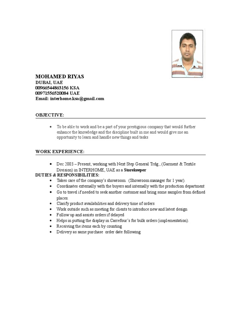 Sample Resume Format For Office Boy